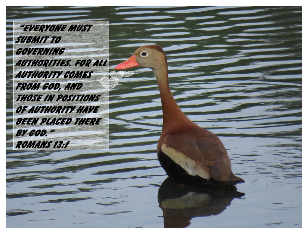 “Everyone must submit to governing authorities. For all authority comes from God, and those in positions of authority have been placed there by God.” Romans 13:1
