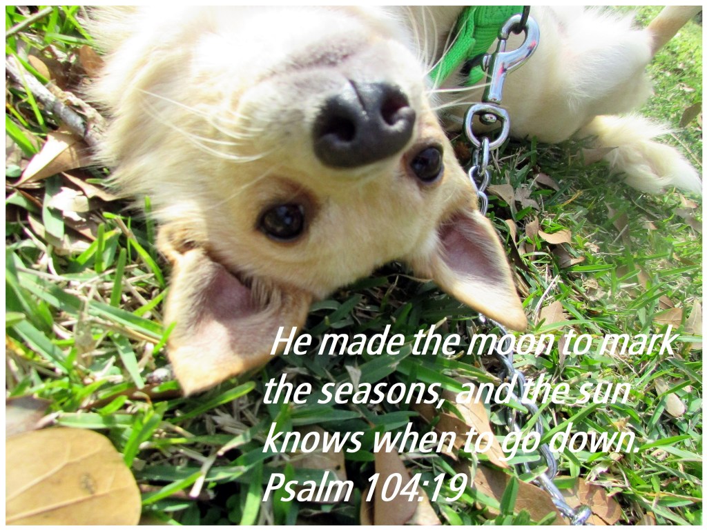 Uncategorized “Blessings of Season” Date: September 16, 2019Author: © Christian National Church of Christ 0 Comments He made the moon to mark the seasons, and the sun knows when to go down. Psalm 104:19 Share this: Share on X (Opens in new window) X Share on Facebook (Opens in new window) Facebook Like Loading... Related