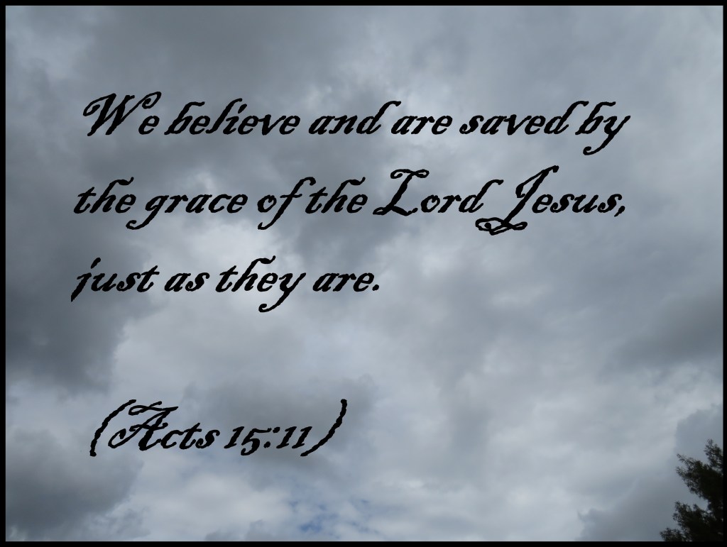 Uncategorized “Grace” Date: October 5, 2019Author: © Christian National Church of Christ 0 Comments We believe and are saved by the grace of the Lord Jesus, just as they are. (Acts 15:11) Share this: Share on X (Opens in new window) X Share on Facebook (Opens in new window) Facebook Like Loading... Related
