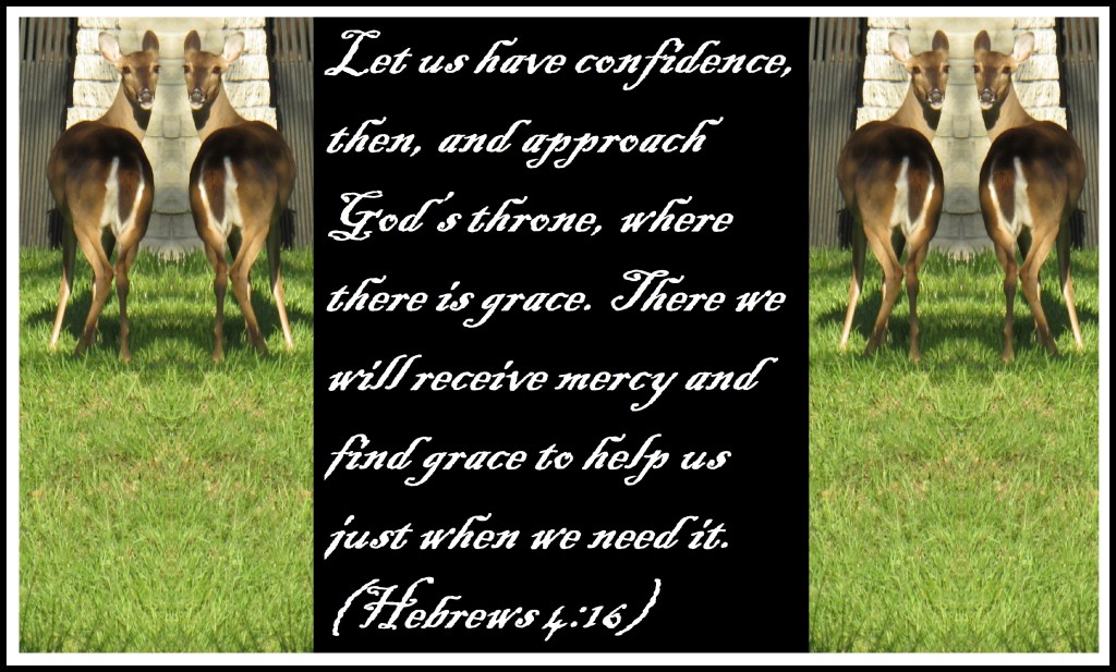 Let us have confidence, then, and approach God’s throne, where there is grace. There we will receive mercy and find grace to help us just when we need it. (Hebrews 4:16)