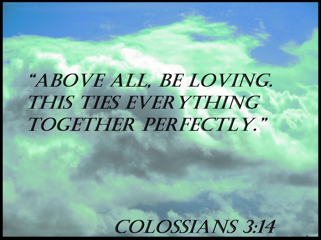 Uncategorized “God’s Heart To You” Date: October 17, 2019Author: © Christian National Church of Christ 0 Comments “Above all, be loving. This ties everything together perfectly.” Colossians 3:14 Share this: Share on X (Opens in new window) X Share on Facebook (Opens in new window) Facebook Like Loading... Related