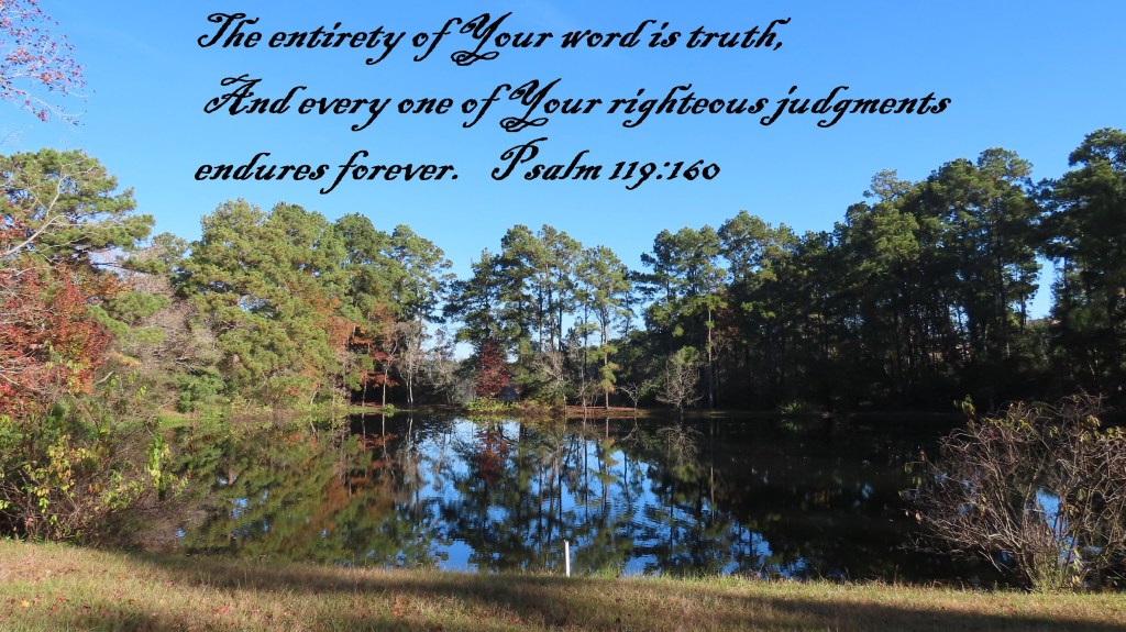 Uncategorized “Evidence Is Clear” Date: November 22, 2019Author: © Christian National Church of Christ 0 Comments The entirety of Your word is truth, And every one of Your righteous judgments endures forever. Psalm 119:160 Share this: Share on X (Opens in new window) X Share on Facebook (Opens in new window) Facebook Like Loading... Related