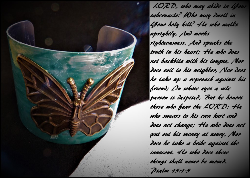 LORD, who may abide in Your tabernacle? Who may dwell in Your holy hill? He who walks uprightly, And works righteousness, And speaks the truth in his heart; He who does not backbite with his tongue, Nor does evil to his neighbor, Nor does he take up a reproach against his friend; In whose eyes a vile person is despised, But he honors those who fear the LORD; He who swears to his own hurt and does not change; He who does not put out his money at usury, Nor does he take a bribe against the innocent. He who does these things shall never be moved. Psalm 15:1-5