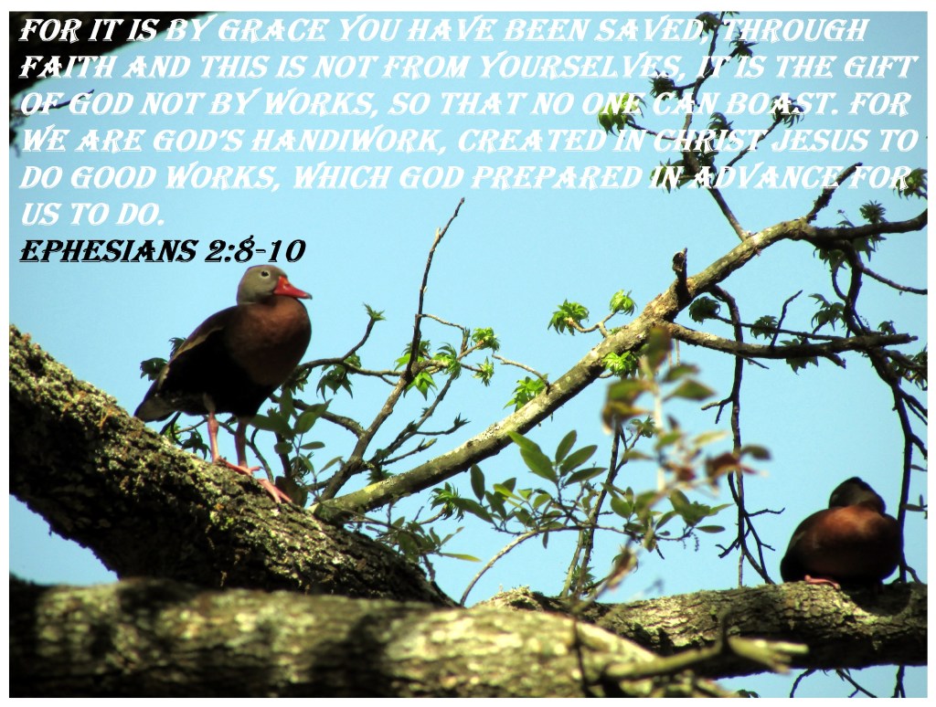 For it is by grace you have been saved, through faith and this is not from yourselves, it is the gift of God not by works, so that no one can boast. For we are God’s handiwork, created in Christ Jesus to do good works, which God prepared in advance for us to do. Ephesians 2:8-10