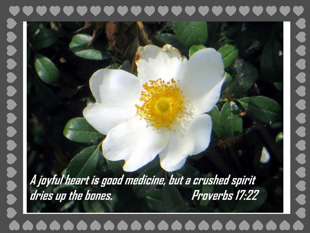 Uncategorized “Happy Heart” Date: January 20, 2020Author: © Christian National Church of Christ 0 Comments A joyful heart is good medicine, but a crushed spirit dries up the bones.Proverbs 17:22 Share this: Share on X (Opens in new window) X Share on Facebook (Opens in new window) Facebook Like Loading... Related