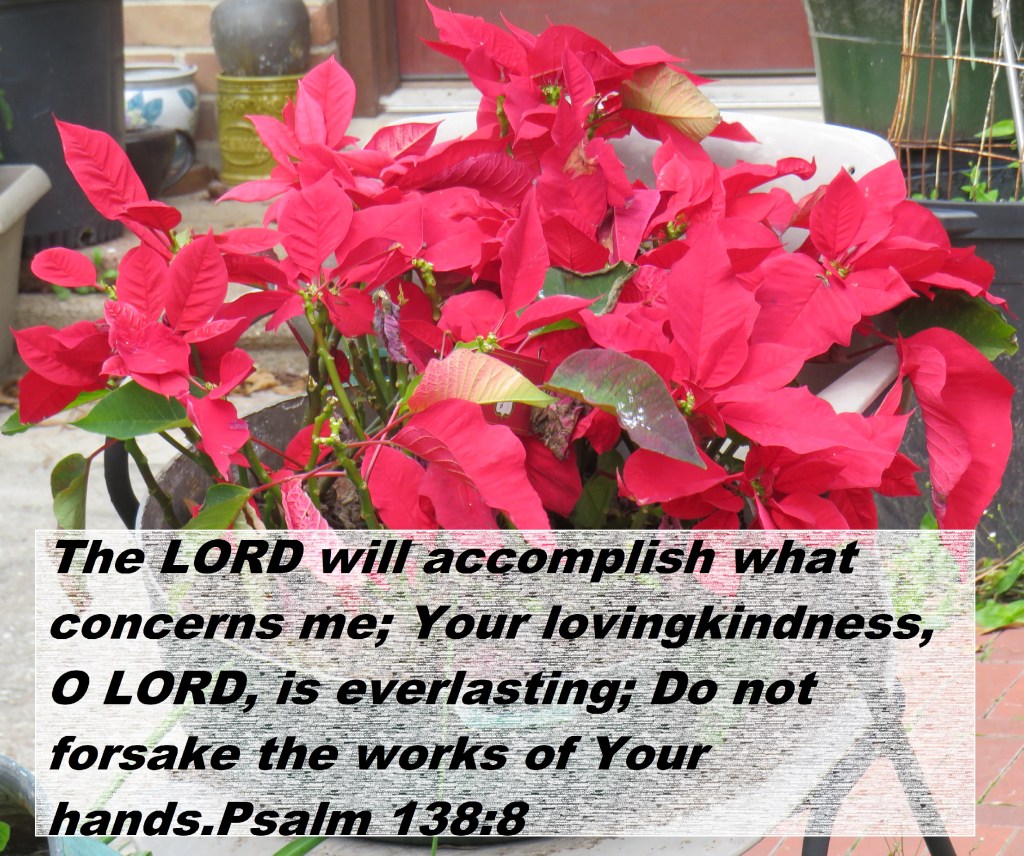 The LORD will accomplish what concerns me; Your lovingkindness, O LORD, is everlasting; Do not forsake the works of Your hands.Psalm 138:8