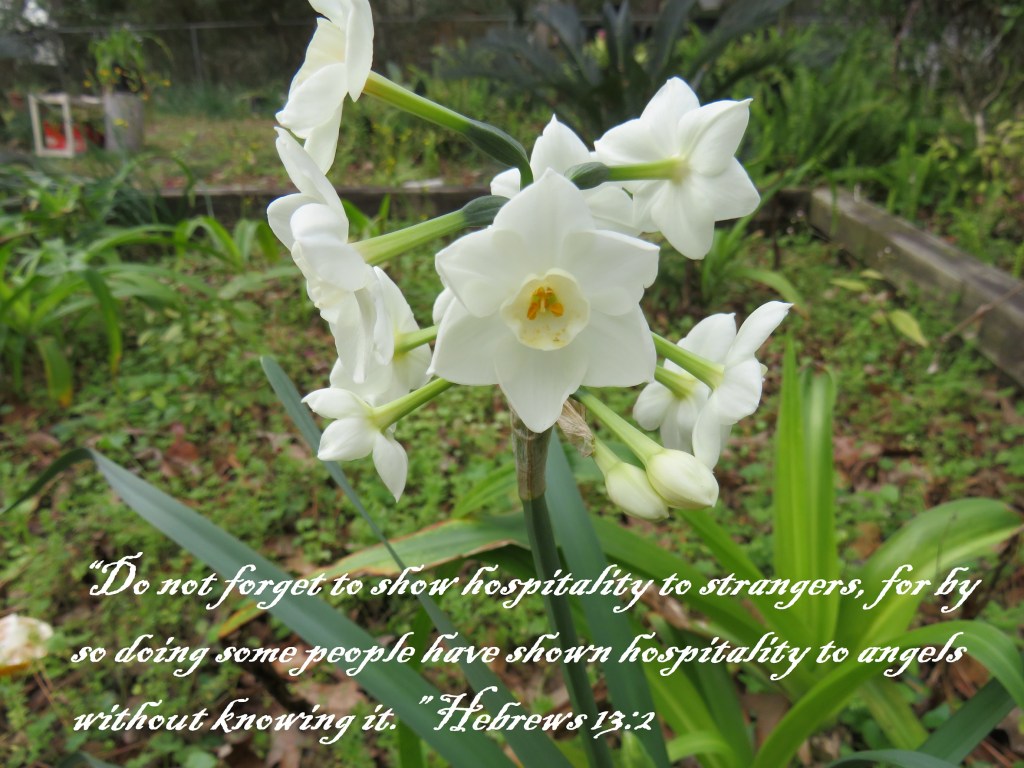 “Do not forget to show hospitality to strangers, for by so doing some people have shown hospitality to angels without knowing it.” Hebrews 13:2