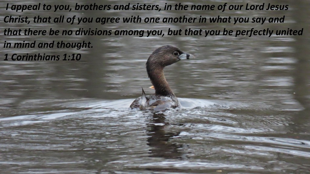I appeal to you, brothers and sisters, in the name of our Lord Jesus Christ, that all of you agree with one another in what you say and that there be no divisions among you, but that you be perfectly united in mind and thought. 1 Corinthians 1:10