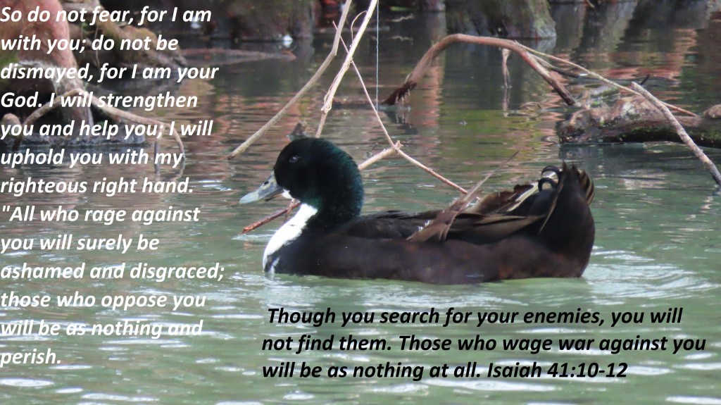 So do not fear, for I am with you; do not be dismayed, for I am your God. I will strengthen you and help you; I will uphold you with my righteous right hand. “All who rage against you will surely be ashamed and disgraced; those who oppose you will be as nothing and perish. Though you search for your enemies, you will not find them. Those who wage war against you will be as nothing at all.
