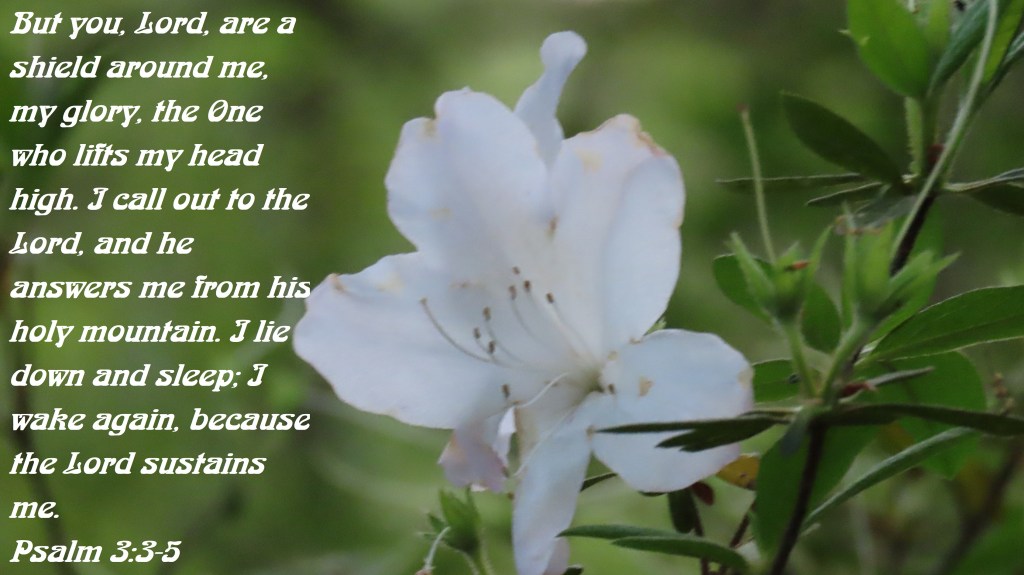 But you, Lord, are a shield around me, my glory, the One who lifts my head high. I call out to the Lord, and he answers me from his holy mountain. I lie down and sleep; I wake again, because the Lord sustains me.