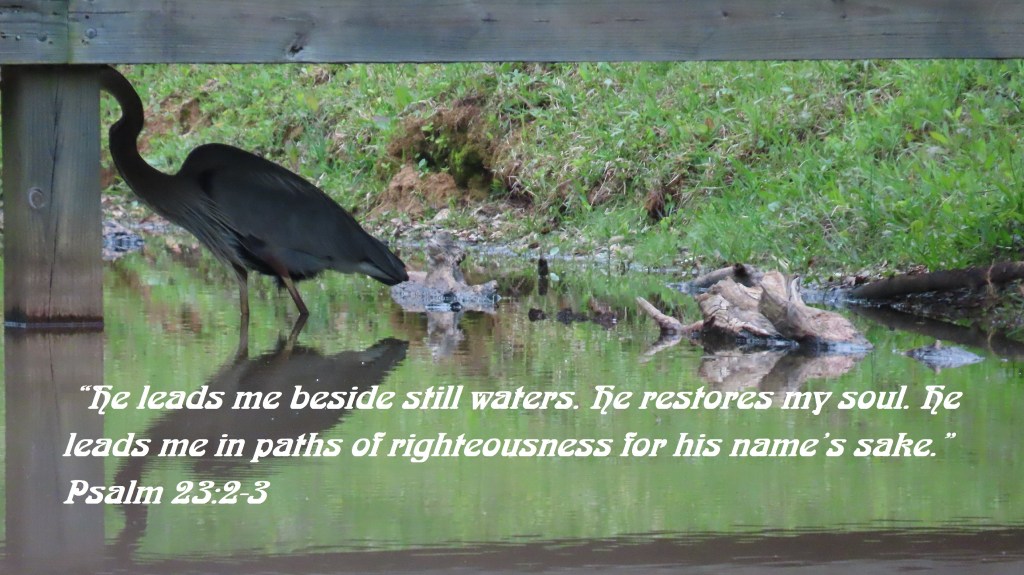 “He leads me beside still waters. He restores my soul. He leads me in paths of righteousness for his name’s sake.” Psalm 23:2-3