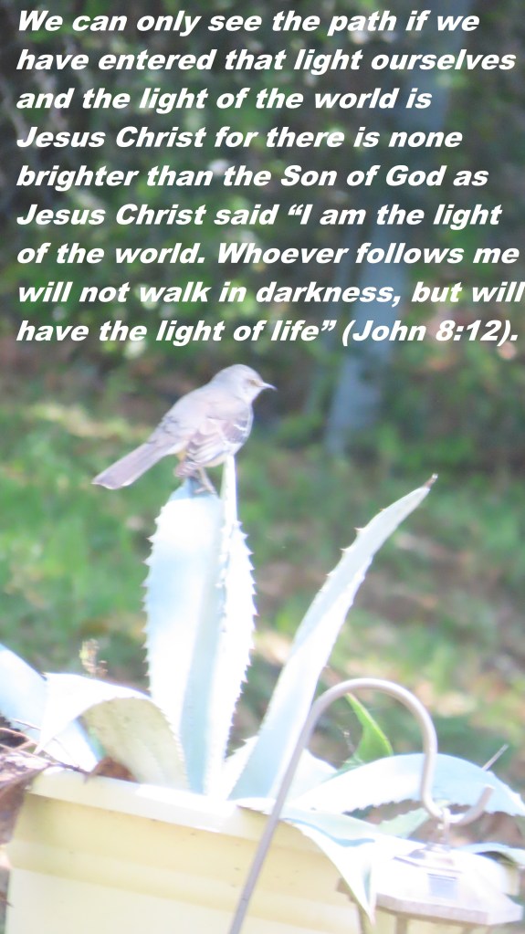 We can only see the path if we have entered that light ourselves and the light of the world is Jesus Christ for there is none brighter than the Son of God as Jesus Christ said “I am the light of the world. Whoever follows me will not walk in darkness, but will have the light of life” (John 8:12).