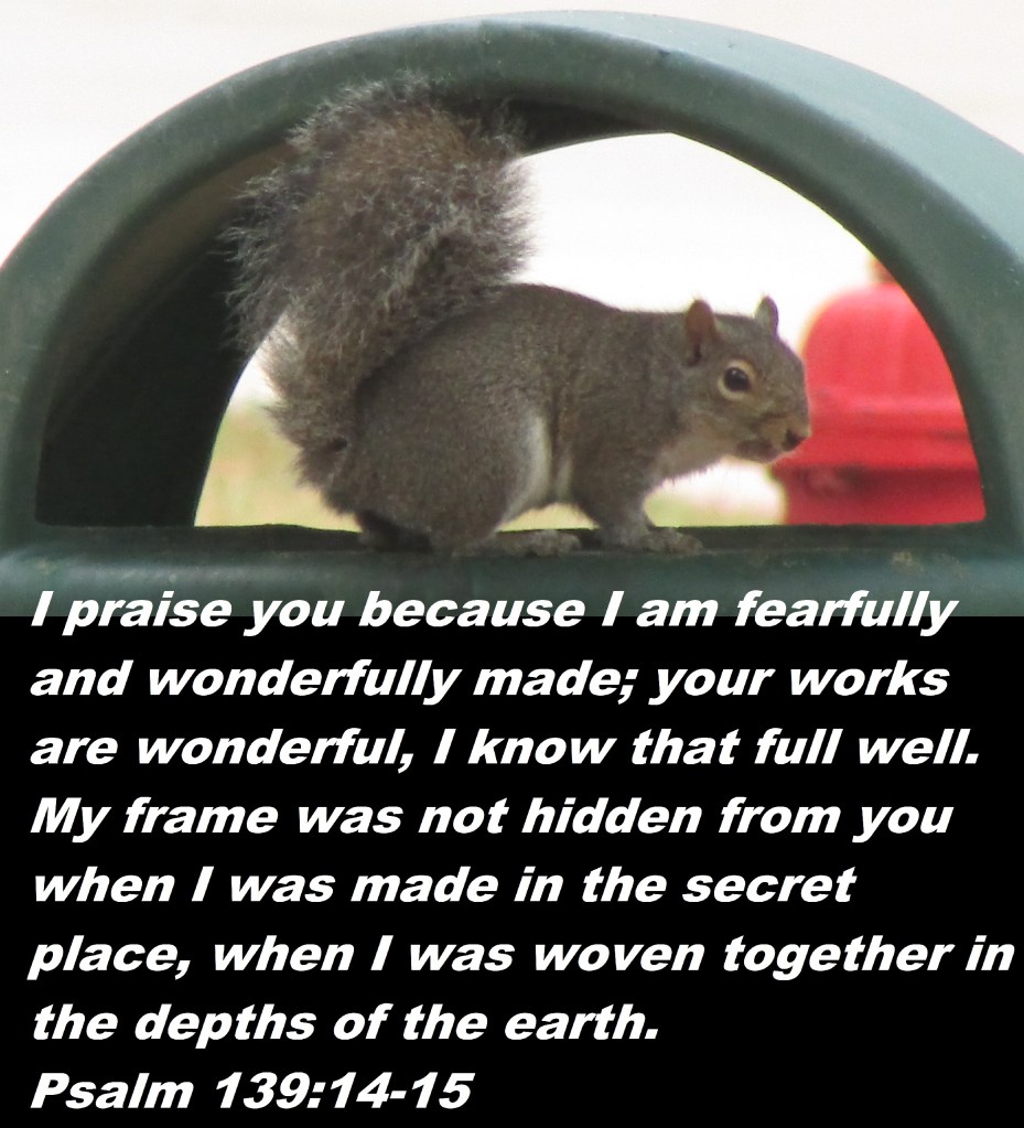I praise you because I am fearfully and wonderfully made; your works are wonderful, I know that full well. My frame was not hidden from you when I was made in the secret place, when I was woven together in the depths of the earth.