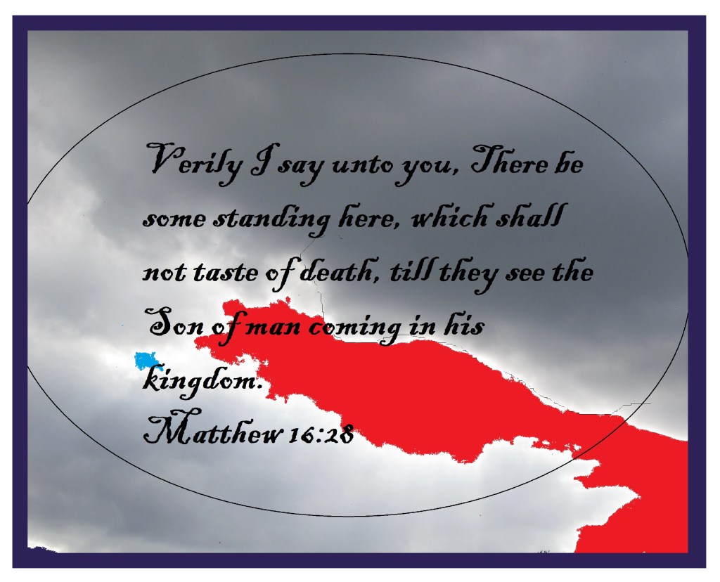 Verily I say unto you, There be some standing here, which shall not taste of death, till they see the Son of man coming in his kingdom. Matthew 16:28