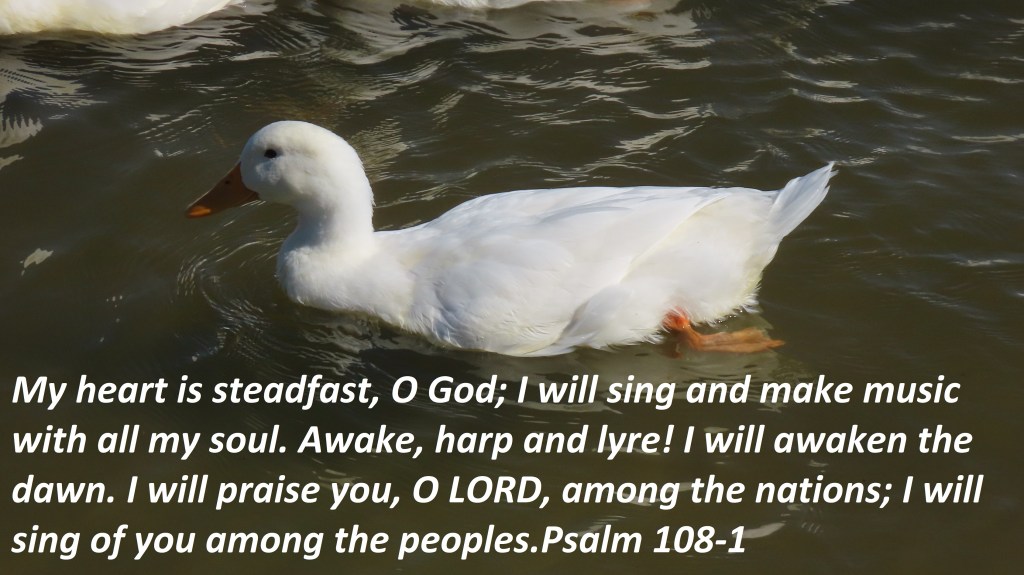 My heart is steadfast, O God; I will sing and make music with all my soul. Awake, harp and lyre! I will awaken the dawn. I will praise you, O LORD, among the nations; I will sing of you among the peoples.Psalm 108-1