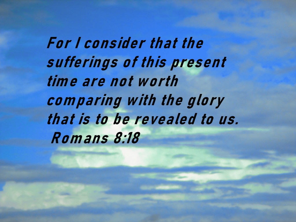For I consider that the sufferings of this present time are not worth comparing with the glory that is to be revealed to us. Romans 8:18