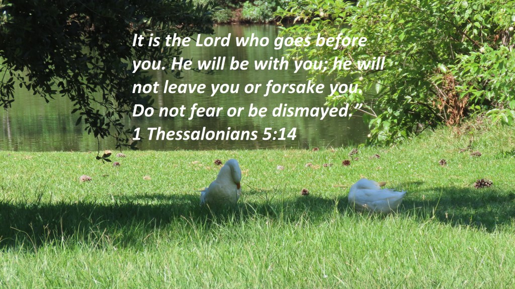 It is the Lord who goes before you. He will be with you; he will not leave you or forsake you. Do not fear or be dismayed.”1 Thessalonians 5:14