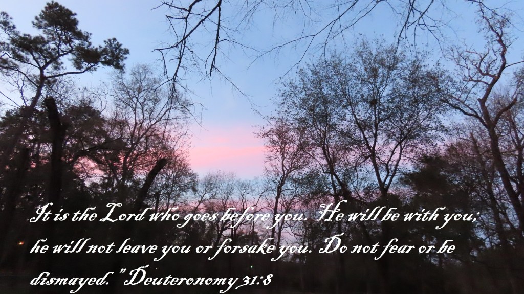 It is the Lord who goes before you. He will be with you; he will not leave you or forsake you. Do not fear or be dismayed.” Deuteronomy 31:8