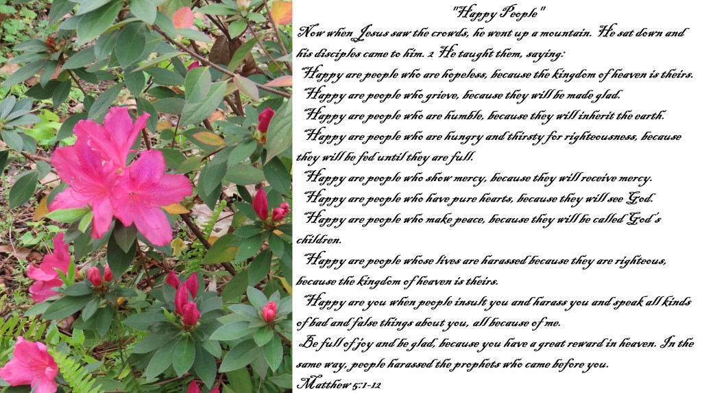 “Happy are people whose lives are harassed because they are righteous, because the kingdom of heaven is theirs.