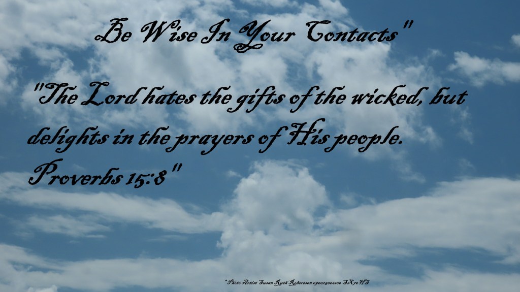 Uncategorized “Be Wise In Your Contacts” Date: August 5, 2020Author: © Christian National Church of Christ 0 Comments “The Lord hates the gifts of the wicked, but delights in the prayers of His people. Proverbs 15:8” Share this: Share on X (Opens in new window) X Share on Facebook (Opens in new window) Facebook Like Loading... Related