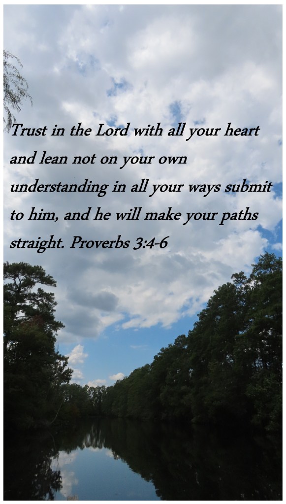 Trust in the Lord with all your heart and lean not on your own understanding in all your ways submit to him, and he will make your paths straight. Proverbs 3:4-6