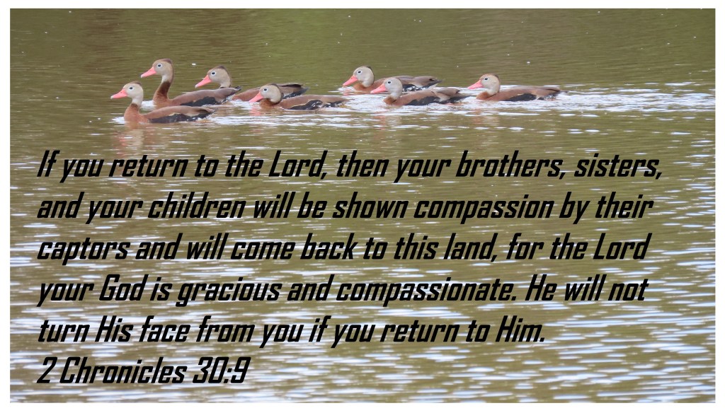 If you return to the Lord, then your brothers, sisters, and your children will be shown compassion by their captors and will come back to this land, for the Lord your God is gracious and compassionate. He will not turn His face from you if you return to Him. 2 Chronicles 30:9