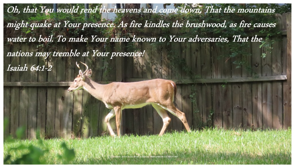 Oh, that You would rend the heavens and come down, That the mountains might quake at Your presence. As fire kindles the brushwood, as fire causes water to boil. To make Your name known to Your adversaries, That the nations may tremble at Your presence! Isaiah 64:1-2