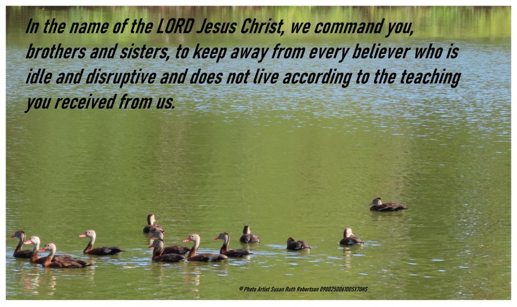 Uncategorized “Being Real” Date: October 18, 2020Author: © Christian National Church of Christ 0 Comments In the name of the LORD Jesus Christ, we command you, brothers and sisters, to keep away from every believer who is idle and disruptive and does not live according to the teaching you received from us. 2 Thessalonians 3:6 Share this: Share on X (Opens in new window) X Share on Facebook (Opens in new window) Facebook Like Loading... Related