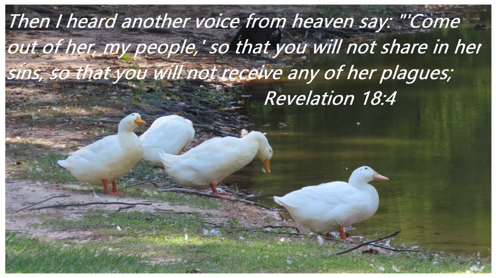 Uncategorized “Compromise” Date: October 23, 2020Author: © Christian National Church of Christ 0 Comments Then I heard another voice from heaven say: “‘Come out of her, my people,’ so that you will not share in her sins, so that you will not receive any of her plagues;Revelation 18:4 Share this: Share on X (Opens in new window) X Share on Facebook (Opens in new window) Facebook Like Loading... Related