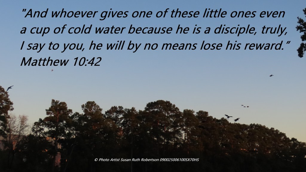 Uncategorized “Work to Give” Date: November 7, 2020Author: © Christian National Church of Christ 0 Comments “And whoever gives one of these little ones even a cup of cold water because he is a disciple, truly, I say to you, he will by no means lose his reward.” Matthew 10:42 Share this: Share on X (Opens in new window) X Share on Facebook (Opens in new window) Facebook Like Loading... Related