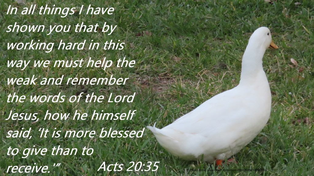 Uncategorized “Be a Giver” Date: November 8, 2020Author: © Christian National Church of Christ 0 Comments In all things I have shown you that by working hard in this way we must help the weak and remember the words of the Lord Jesus, how he himself said, ‘It is more blessed to give than to receive.’” Acts 20:35 Share this: Share on X (Opens in new window) X Share on Facebook (Opens in new window) Facebook Like Loading... Related