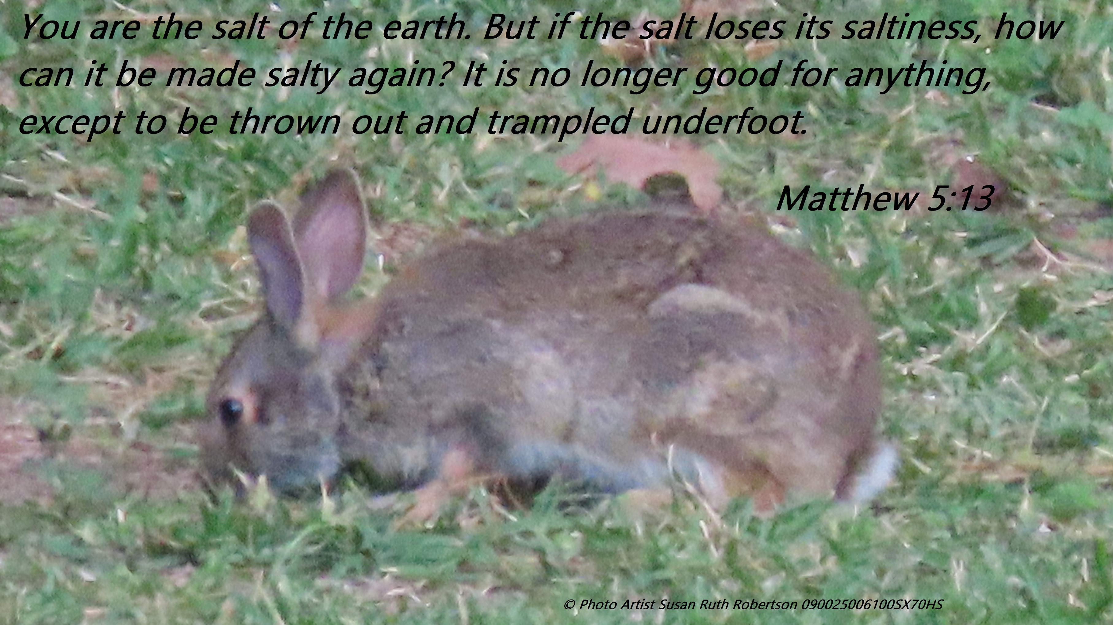 You are the salt of the earth. But if the salt loses its saltiness, how can it be made salty again? It is no longer good for anything, except to be thrown out and trampled underfoot. Matthew 5:13