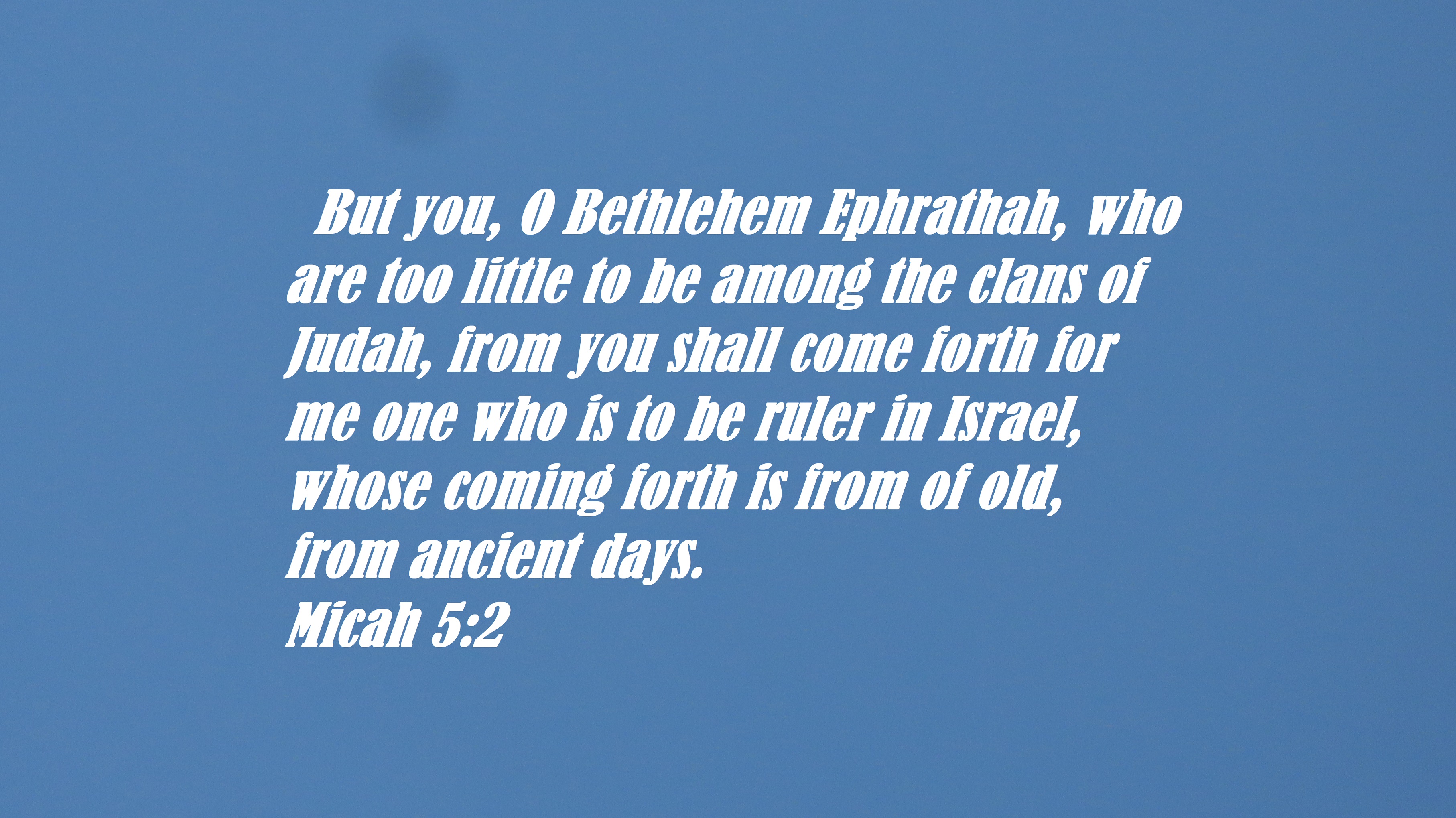 Uncategorized “Born in Bethlehem” Date: December 24, 2020Author: © Christian National Church of Christ 0 Comments But you, O Bethlehem Ephrathah, who are too little to be among the clans of Judah, from you shall come forth for me one who is to be ruler in Israel, whose coming forth is from of old, from ancient days. Micah 5:2 Share this: Share on X (Opens in new window) X Share on Facebook (Opens in new window) Facebook Like Loading... Related