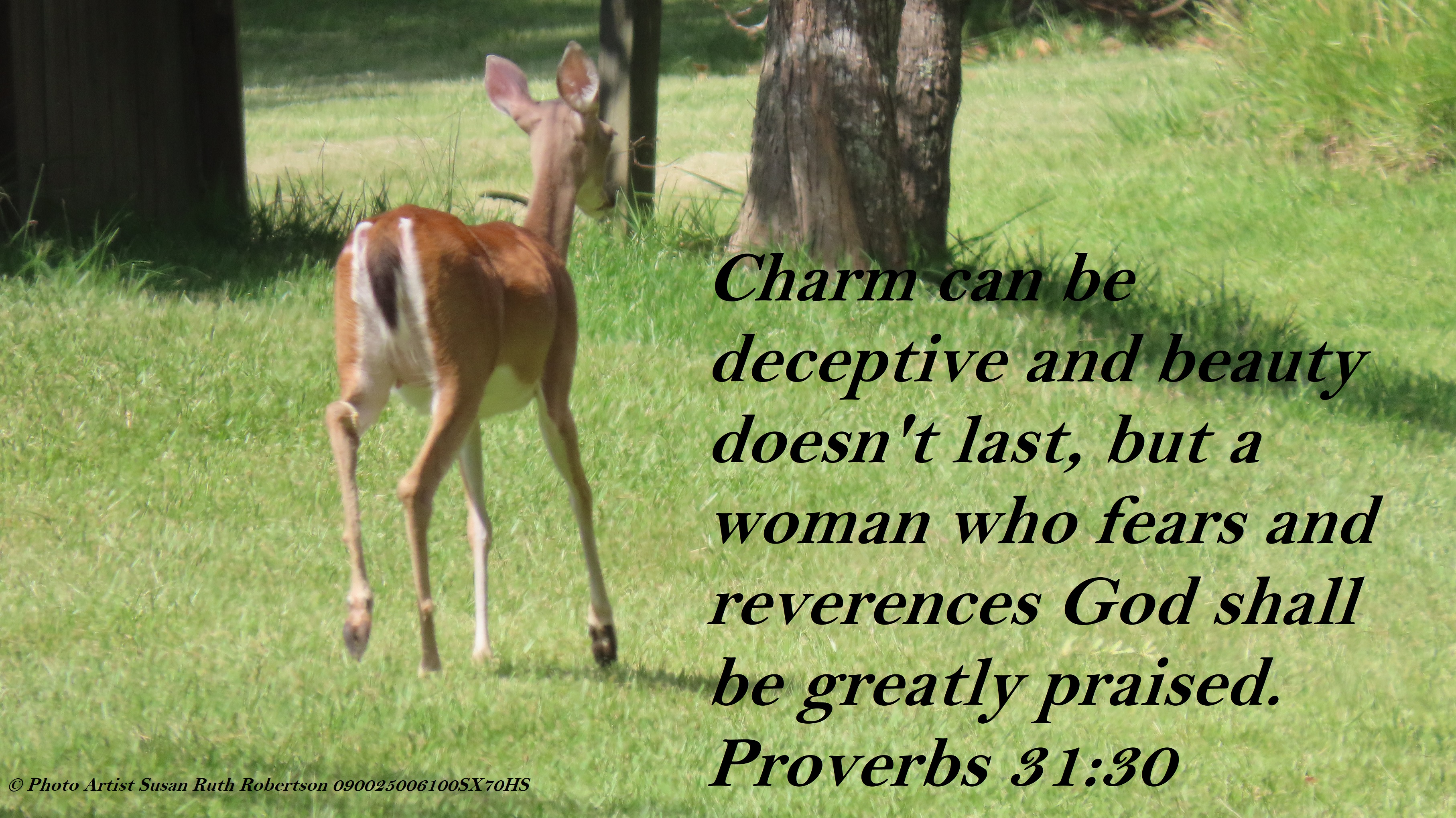 Uncategorized “Deep Respect For God” Date: January 19, 2021Author: © Christian National Church of Christ 0 Comments Charm can be deceptive and beauty doesn’t last, but a woman who fears and reverences God shall be greatly praised. Proverbs 31:30 Share this: Share on X (Opens in new window) X Share on Facebook (Opens in new window) Facebook Like Loading... Related