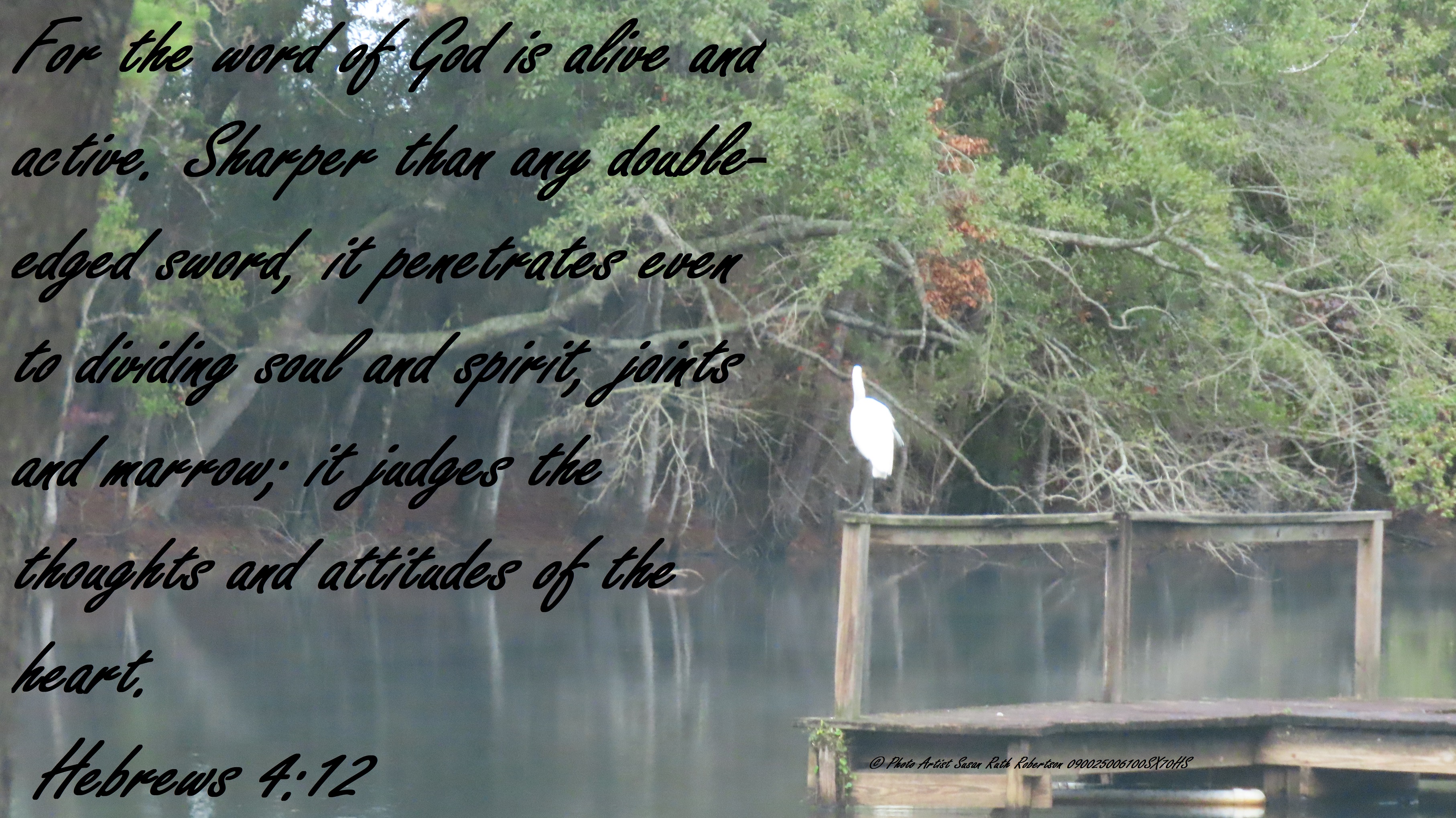 Uncategorized “Assurance Jesus Lives” Date: January 25, 2021Author: © Christian National Church of Christ 0 Comments For the word of God is alive and active. Sharper than any double-edged sword, it penetrates even to dividing soul and spirit, joints and marrow; it judges the thoughts and attitudes of the heart. Hebrews 4:12 Share this: Share on X (Opens in new window) X Share on Facebook (Opens in new window) Facebook Like Loading... Related