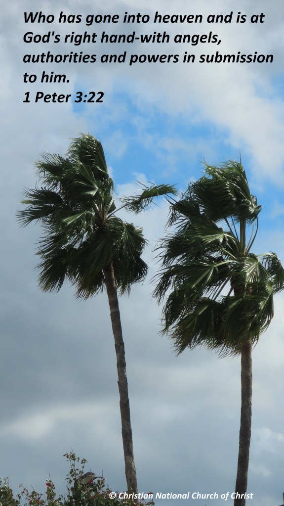 Uncategorized “Jesus” Date: February 12, 2021Author: © Christian National Church of Christ 0 Comments Who has gone into heaven and is at God’s right hand-with angels, authorities and powers in submission to him.1 Peter 3:22 Share this: Share on X (Opens in new window) X Share on Facebook (Opens in new window) Facebook Like Loading... Related