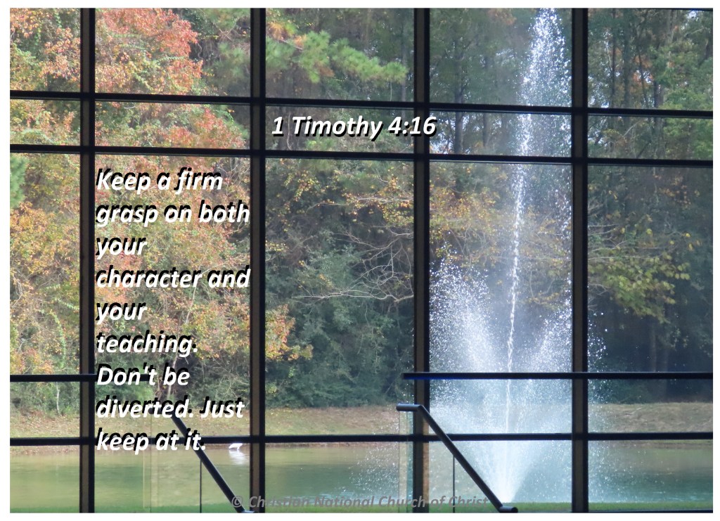Uncategorized “Grow The Inner You” Date: March 4, 2021Author: © Christian National Church of Christ 0 Comments Keep a firm grasp on both your character and your teaching. Don’t be diverted. Just keep at it. 1 Timothy 4:16 Share this: Share on X (Opens in new window) X Share on Facebook (Opens in new window) Facebook Like Loading... Related
