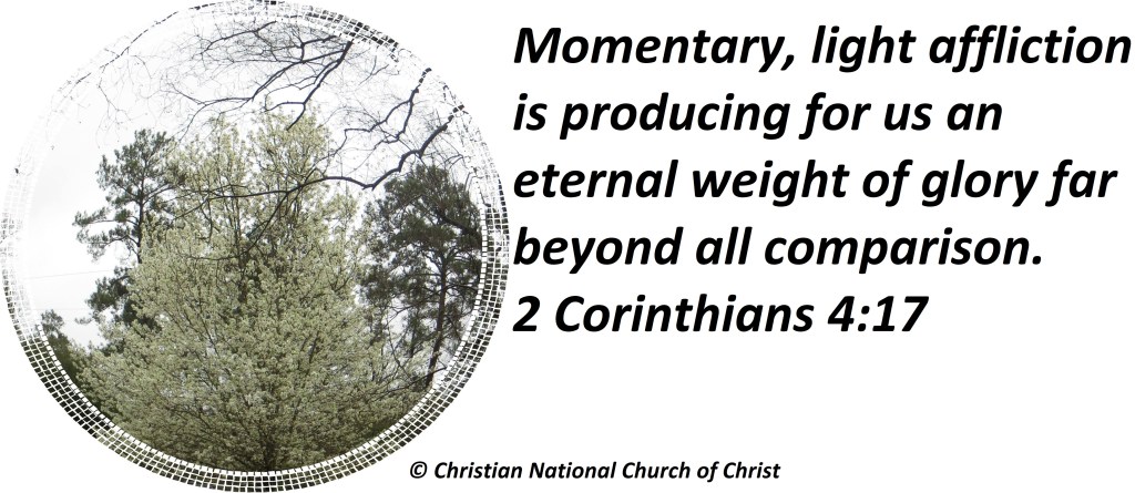 Uncategorized “Skilled Under Fire” Date: March 8, 2021Author: © Christian National Church of Christ 0 Comments Momentary, light affliction is producing for us an eternal weight of glory far beyond all comparison. 2 Corinthians 4:17 Share this: Share on X (Opens in new window) X Share on Facebook (Opens in new window) Facebook Like Loading... Related