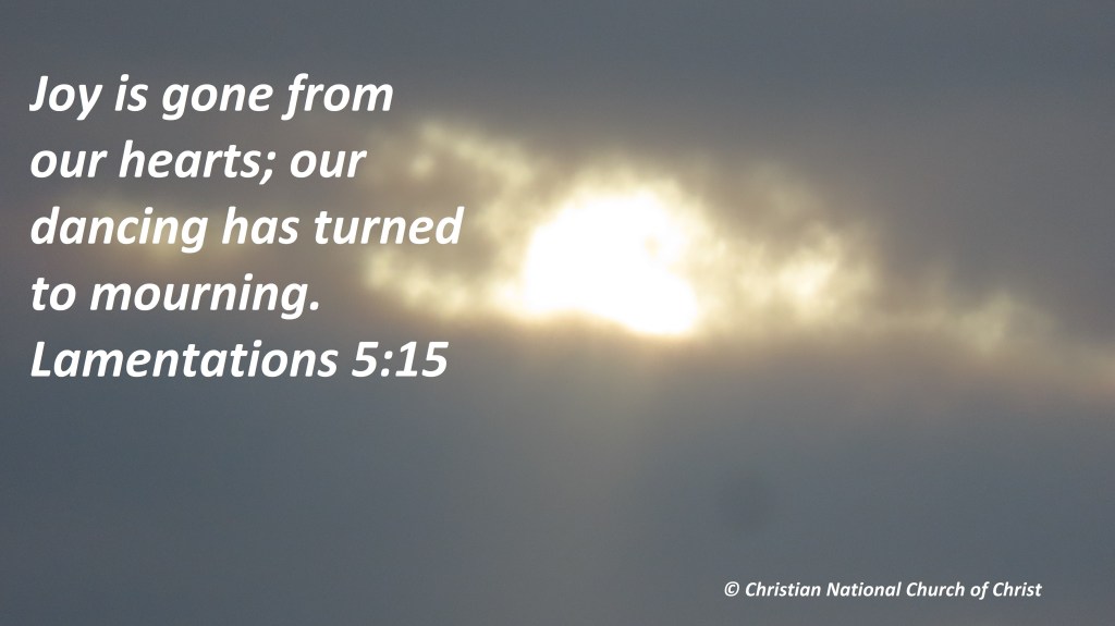 Uncategorized “Dance Anyway” Date: March 13, 2021Author: © Christian National Church of Christ 0 Comments Joy is gone from our hearts; our dancing has turned to mourning. Lamentations 5:15 Share this: Share on X (Opens in new window) X Share on Facebook (Opens in new window) Facebook Like Loading... Related