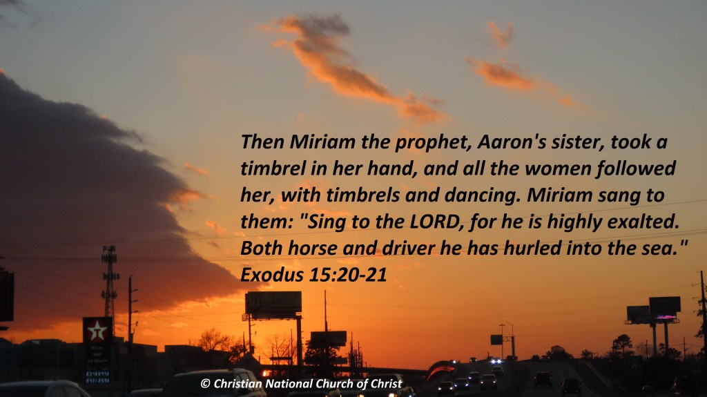 Then Miriam the prophet, Aaron’s sister, took a timbrel in her hand, and all the women followed her, with timbrels and dancing. Miriam sang to them: “Sing to the LORD, for he is highly exalted. Both horse and driver he has hurled into the sea.” Exodus 15:20-21