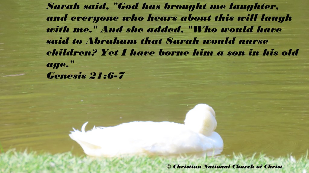 Uncategorized “God Brings Laughter” Date: March 20, 2021Author: © Christian National Church of Christ 0 Comments Sarah said, “God has brought me laughter, and everyone who hears about this will laugh with me.” And she added, “Who would have said to Abraham that Sarah would nurse children? Yet I have borne him a son in his old age.” Genesis 21:6-7 Share this: Share on X (Opens in new window) X Share on Facebook (Opens in new window) Facebook Like Loading... Related