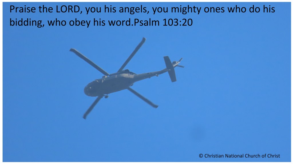 Uncategorized “Good Angels” Date: March 22, 2021Author: © Christian National Church of Christ 0 Comments Praise the LORD, you his angels, you mighty ones who do his bidding, who obey his word. Psalm 103:20 Share this: Share on X (Opens in new window) X Share on Facebook (Opens in new window) Facebook Like Loading... Related