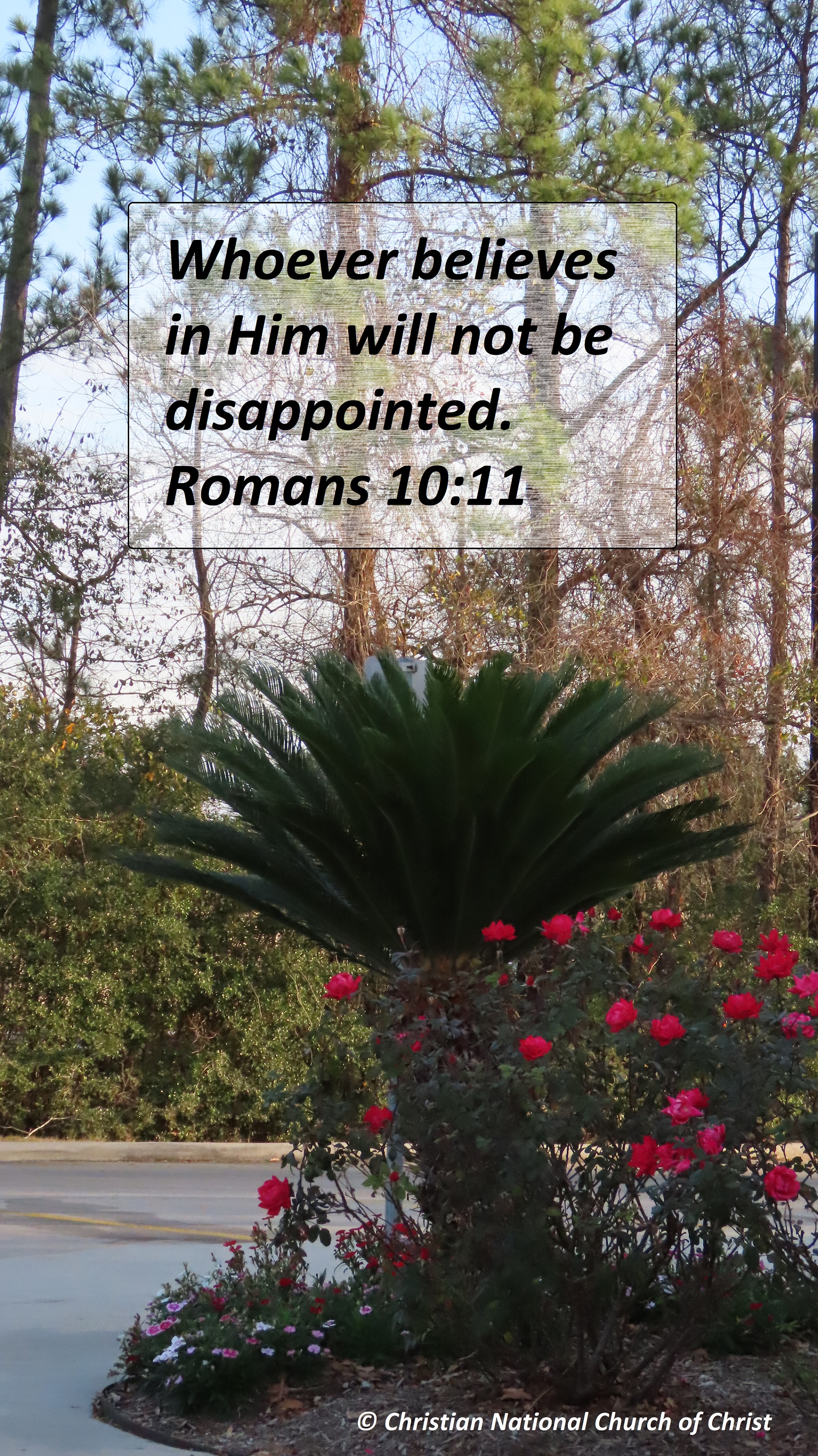 Uncategorized “Believe In Jesus” Date: March 24, 2021Author: © Christian National Church of Christ 0 Comments Whoever believes in Him will not be disappointed. Romans 10:11 Share this: Share on X (Opens in new window) X Share on Facebook (Opens in new window) Facebook Like Loading... Related