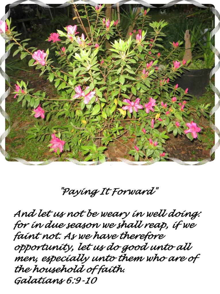 Uncategorized “Paying It Forward” Date: March 27, 2021Author: © Christian National Church of Christ 0 Comments And let us not be weary in well doing: for in due season we shall reap, if we faint not. As we have therefore opportunity, let us do good unto all men, especially unto them who are of the household of faith.Galatians 6:9-10 Share this: Share on X (Opens in new window) X Share on Facebook (Opens in new window) Facebook Like Loading... Related
