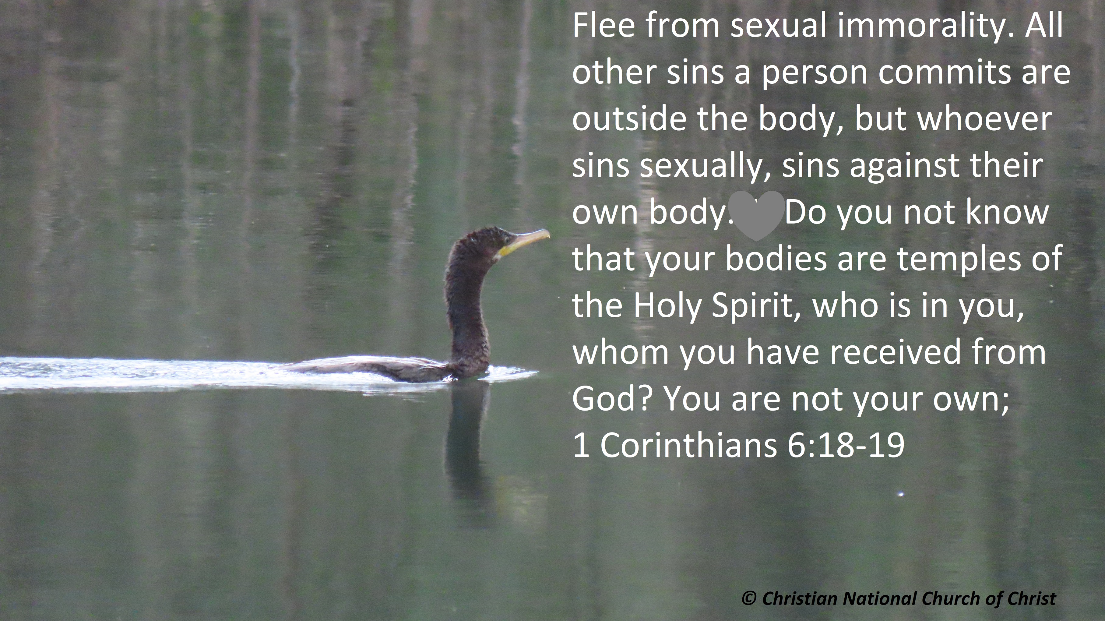 Flee from sexual immorality. All other sins a person commits are outside the body, but whoever sins sexually, sins against their own body. Do you not know that your bodies are temples of the Holy Spirit, who is in you, whom you have received from God? You are not your own;
