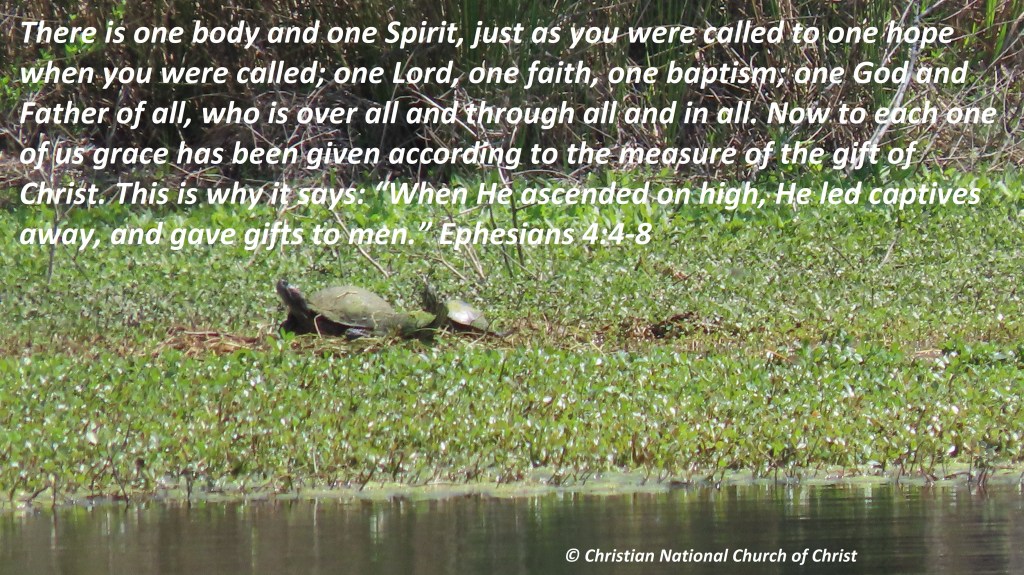 There is one body and one Spirit, just as you were called to one hope when you were called; one Lord, one faith, one baptism; one God and Father of all, who is over all and through all and in all. Now to each one of us grace has been given according to the measure of the gift of Christ. This is why it says: “When He ascended on high, He led captives away, and gave gifts to men.”