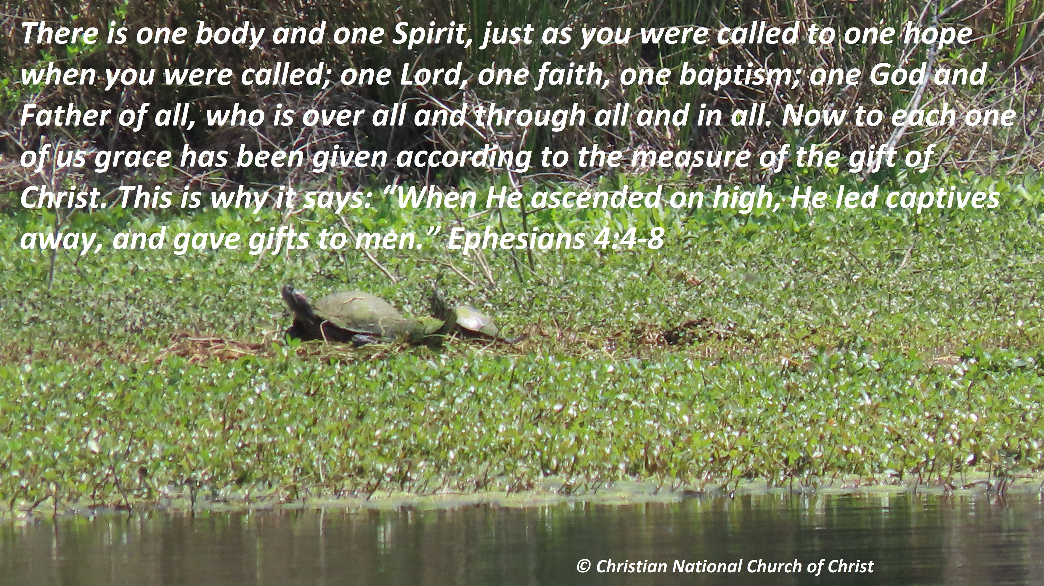 There is one body and one Spirit, just as you were called to one hope when you were called; one Lord, one faith, one baptism; one God and Father of all, who is over all and through all and in all. Now to each one of us grace has been given according to the measure of the gift of Christ. This is why it says: “When He ascended on high, He led captives away, and gave gifts to men.”
