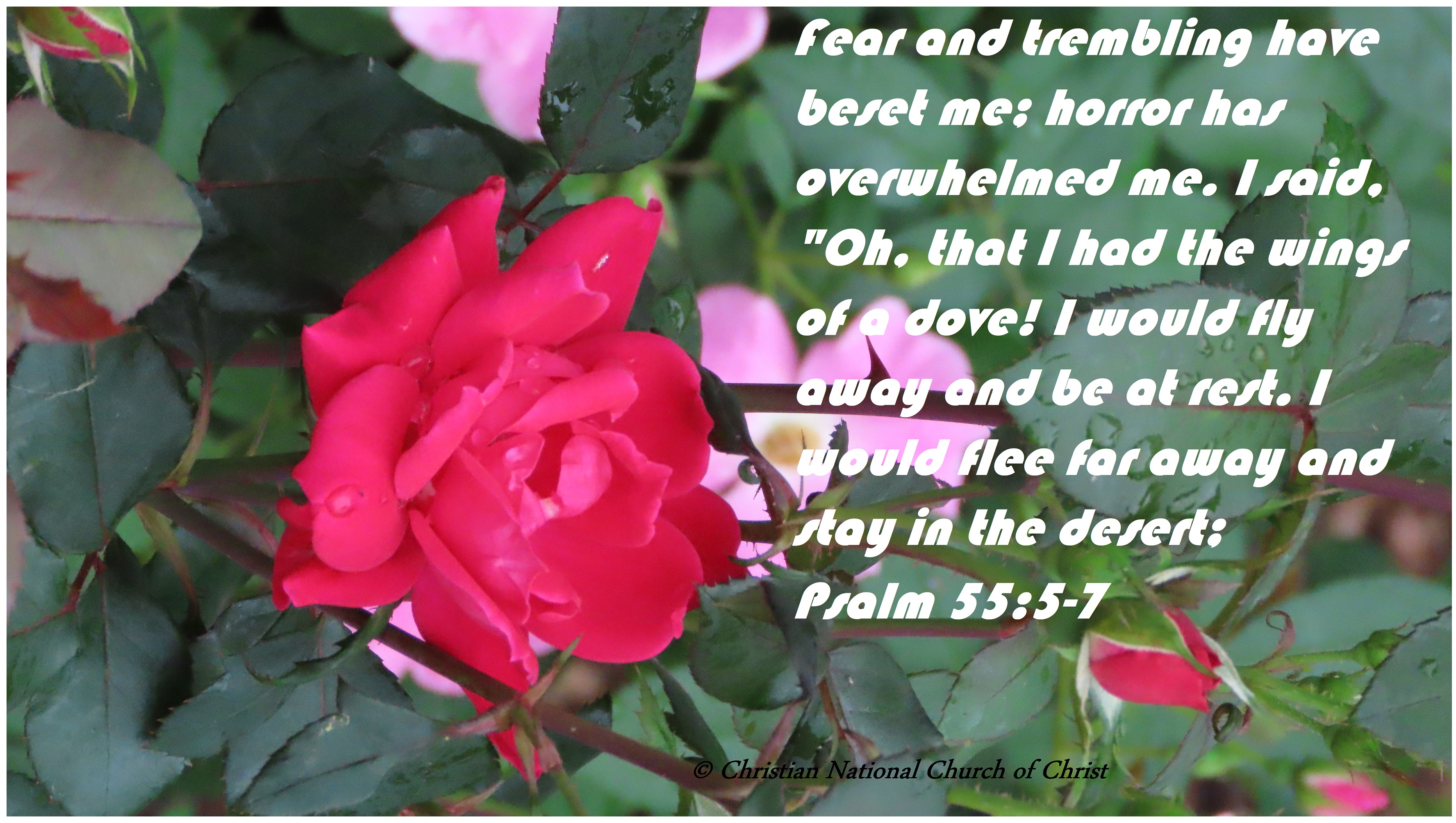 Uncategorized “A maskil of David” Date: April 15, 2021Author: © Christian National Church of Christ 0 Comments Fear and trembling have beset me; horror has overwhelmed me. I said, “Oh, that I had the wings of a dove! I would fly away and be at rest. I would flee far away and stay in the desert;Psalm 55:5-7 Share this: Share on X (Opens in new window) X Share on Facebook (Opens in new window) Facebook Like Loading... Related