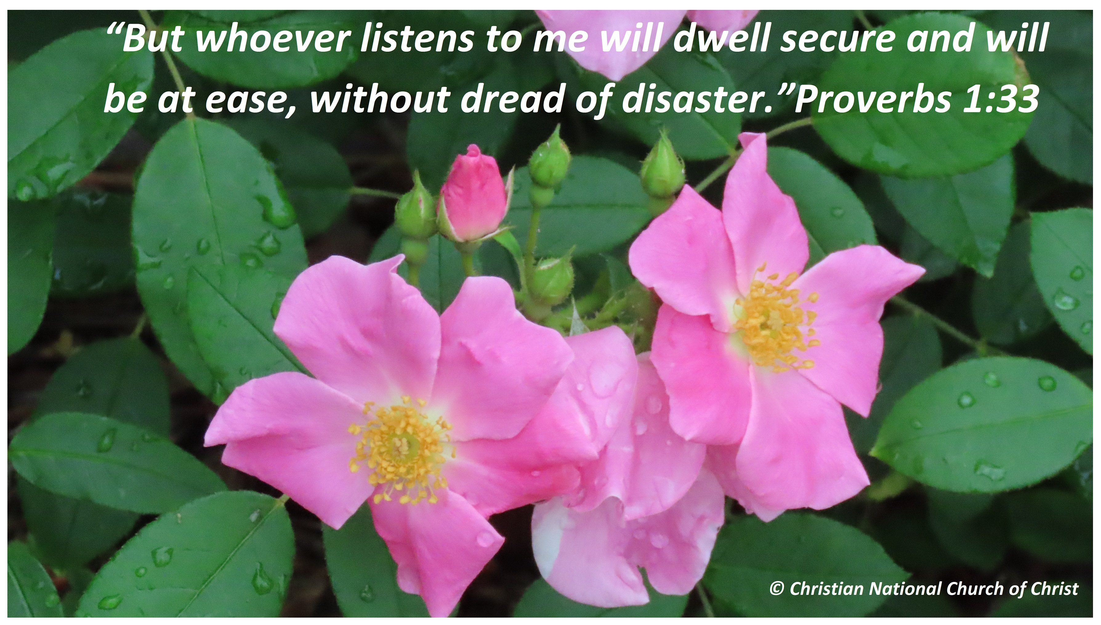Uncategorized “Be Free From Fear” Date: April 16, 2021Author: © Christian National Church of Christ 0 Comments “But whoever listens to me will dwell secure and will be at ease, without dread of disaster.” Proverbs 1:33 Share this: Share on X (Opens in new window) X Share on Facebook (Opens in new window) Facebook Like Loading... Related