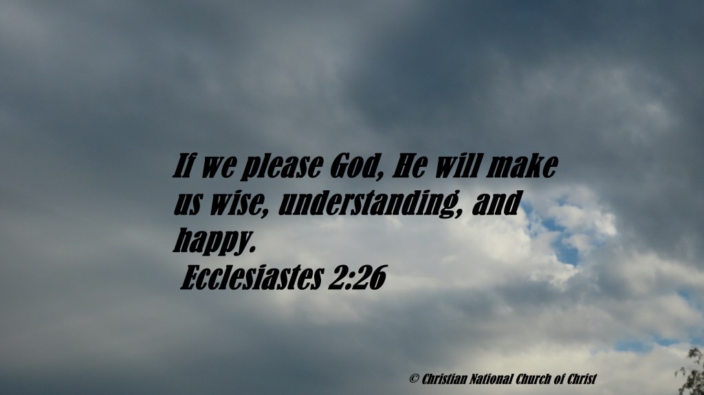 Uncategorized “Straight Up Happy” Date: April 23, 2021Author: © Christian National Church of Christ 0 Comments If we please God, He will make us wise, understanding, and happy. Ecclesiastes 2:26 Share this: Share on X (Opens in new window) X Share on Facebook (Opens in new window) Facebook Like Loading... Related